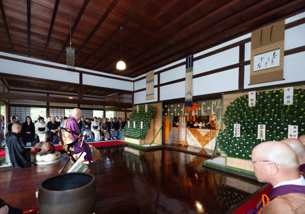 令和7年10月19日(日)、武者小路千家四代(官休庵初代)、似休斎一翁宗守居士の三百五十年忌並びに十三代有隣斎徳翁宗守居士二十七回忌、十三代家元夫人清泉妙澄大姉二十三回忌の追善法要が大徳寺聚光院にて営まれました。法要には不徹斎宗匠、宗屋若宗匠をはじめ親族方並びに直門社中方、流儀関係者等が参列しました。